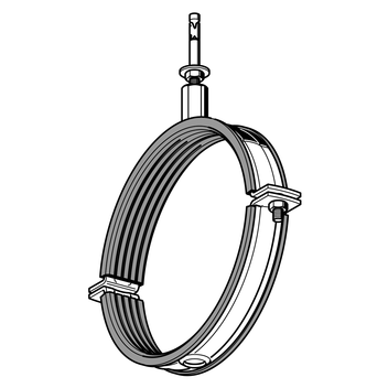 Pipe clamp Stabil D-3G with lining with Bolt Anchor M10 and Round Rod Coupling R 1/2", suitable for sizes 200 up to 315.