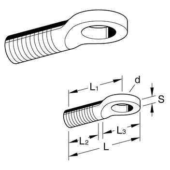 Fixings and Fastenings Eye Bolt SCR Group:1303 Product as PDF file Technical Data Material: Steel, electro-galvanised TypeL [mm]L1 [mm]L2 [mm]L3 [mm]d [mm]s [mm]W [kg]Quantity [pack] Part number M845342021 8.53.30.01100 102418 M104836202512.04.20.02100 102427