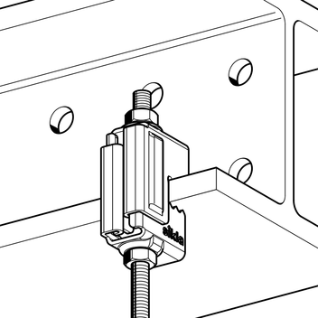 Place the beam clamp around the flange and push the two components together. Pass the threaded rod through the beam clamp and tighten both nuts (tightening torque 10 Nm).