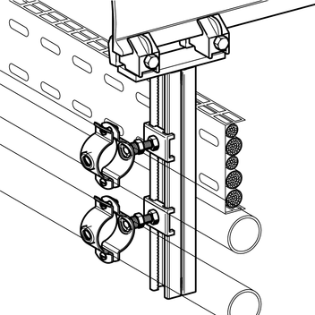 Solid connection element to fix pipework, electrical containment services to flat-steel bulk profiles.