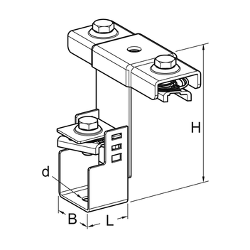 Insert the cross strut section into the hooked feeder plate and fix it by means of the clamping plate, Speed Nut NT CC 41 and hexagon bolt.