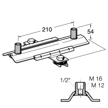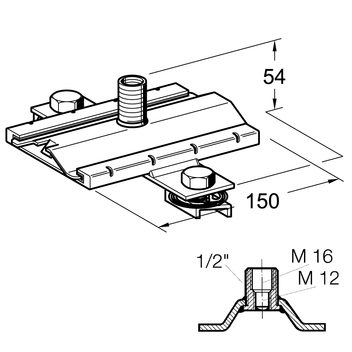 Various connection options of the pipe clamp depending on the respective load: M12, M16. In combination with 1/2"-adapters (see Adapter f/f) there are even further possibilities.
