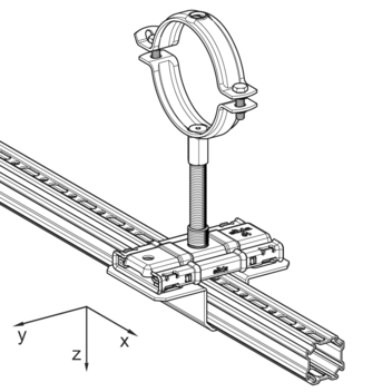 Bi-directional Slide Set for single and double guided brackets on siMetrix Profile PRO 46. Connection options vary on the load, using either the 3G thread: M10, M16 and 1/2".