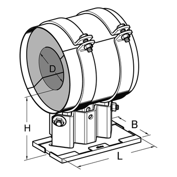 With PUR insulation insert for pipes on suitable surfaces. Height-adjustable in steps of 2.5 mm. When resting on steel beams, a minimum flange width of 80 mm is recommended.