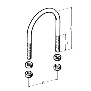 When used as Guided Support, nuts have to be arranged and fixed on both sides, at the top and at the bottom of the profile. Thereby the pipe should remain flexible. When used as Fixed Point the admissible loads of the connecting elements shouldn't exceed the bending loads of the U-bolt.
