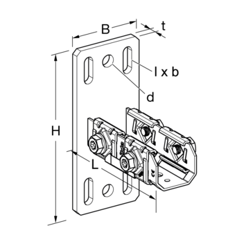 | Type | B [mm] | H [mm] | t [mm] | d [mm] | l x b [mm] | L [mm] | No. of Blocks with screws laterally |