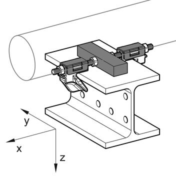 Position the preassembled clamping hooks onto the beam flange and tighten the nuts (to 10Nm). For beam widths < 100mm both nuts of the PA bearing blocks have to be removed. The pipe slides directly on the PA bearing blocks without lateral guidance. If larger lateral movement (> 40mm) along the Y axis is required or nominal pipe sizes > DN 100 are used, a broader PA bearing block of Type 100 is recommended.